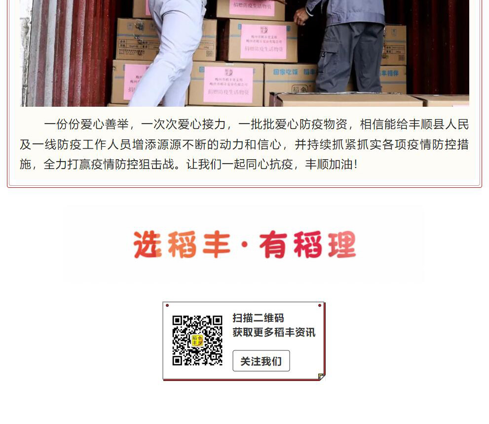 同心抗疫 豐順加油—梅州市稻豐黨支部、梅州市稻豐實業有限公司向豐順縣捐贈稻豐米等物資助力豐順抗擊疫情
