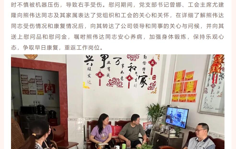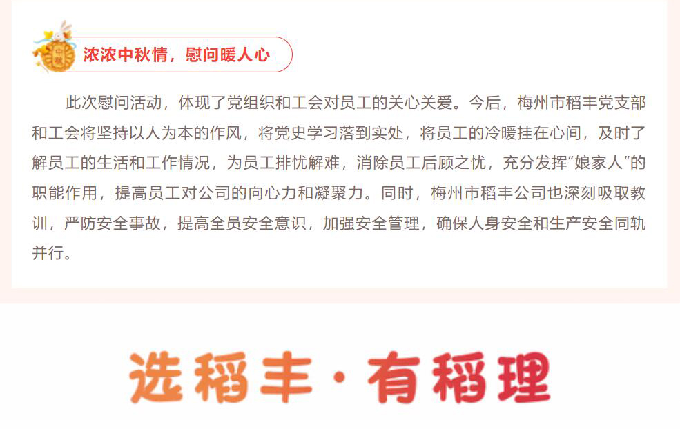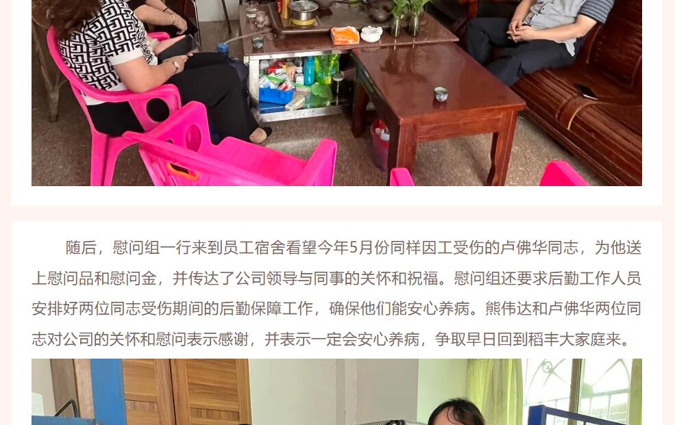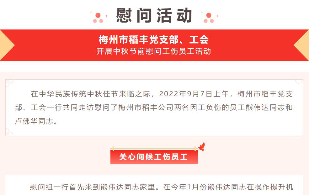 梅州市稻豐黨支部、工會開展中秋節前慰問工傷員工活動